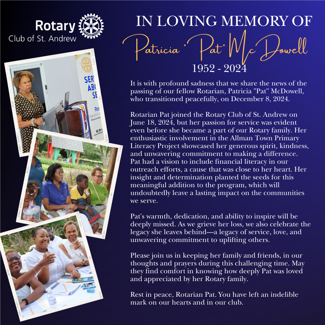 Once again, I humbly thank the Rotary Club of St. Andrew for the confidence placed in me .