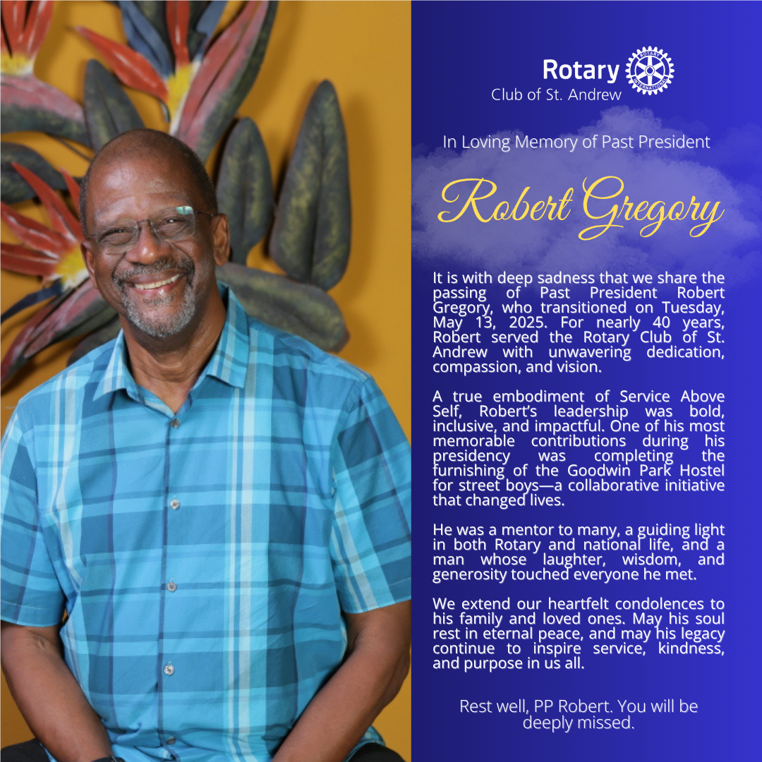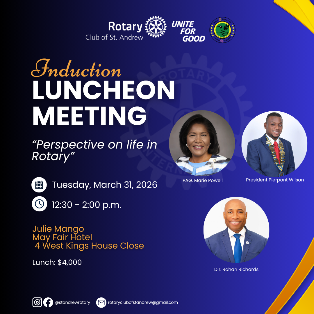 I am involved with several philanthropic ventures, but my preferred platform for changing lives is through Rotary, with its strong record of distinguished service. My introduction to Rotary began during my university years when I would attend meetings with my Grandfather, the late Ricky Richardson, who was a member of this club. The meetings were engaging, and he made it his duty to inform me of several of the club’s projects and how they impacted people’s lives. I was invited to join the club after his passing by PAG Judy Hylton, and I can say it has been a most fulfilling journey. Having served in several positions during my tenure in the club, I started to feel a little pressure from some members about moving forward to take on the role of President. I dodged this responsibility for a while because I felt that the time was not right, as my personal circumstances would not allow me to serve in the way I desired. Each time I thought of the role, there was always something that deterred me. I prayed about the decision, and then I decided to move ahead because there is always “something” in this journey called “life”. We just have to learn how best to navigate the challenges which are sure to arise.